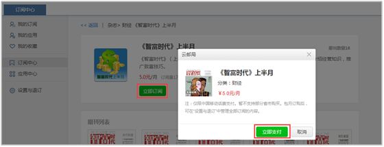 3、点击“立即订阅”按钮,弹出收费订阅框,点击提示框中的“立即支付”;