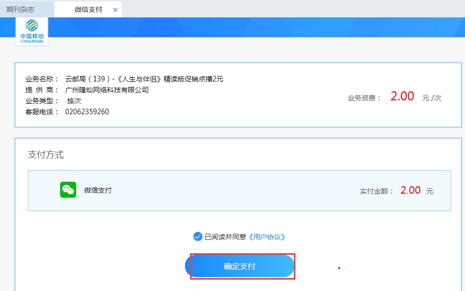 3、在订购页面点击“立即支付”按钮,进入支付页面;