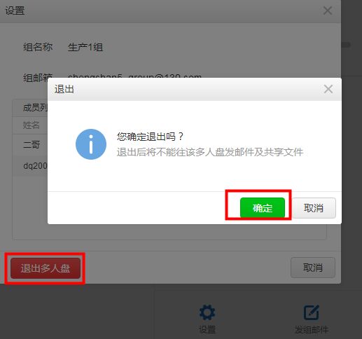 注意:退出多人盘后,将不能往该多人盘发邮件及共享文件。